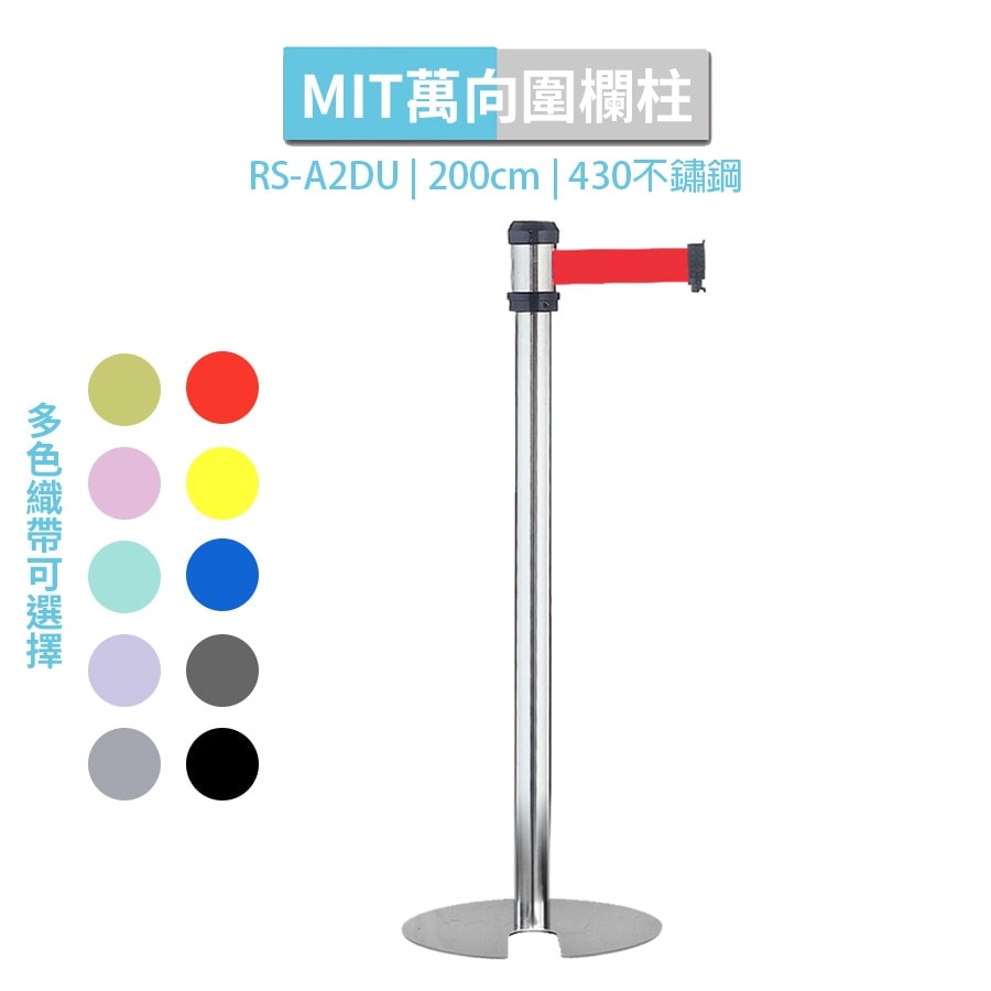 萬向U型收納伸縮帶欄柱 2米織帶 RS-A2DU萬向銀柱_430不鏽鋼 RS-A2DU (織帶多色可選) 紅龍柱 伸縮圍欄柱 萬向掛接 台灣製造 開店 排隊