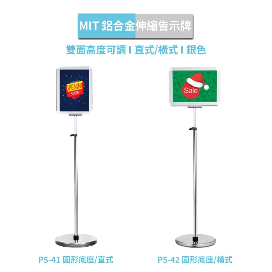 鋁合金雙面伸縮告示牌 高度可調 圓形底座 直式/橫式